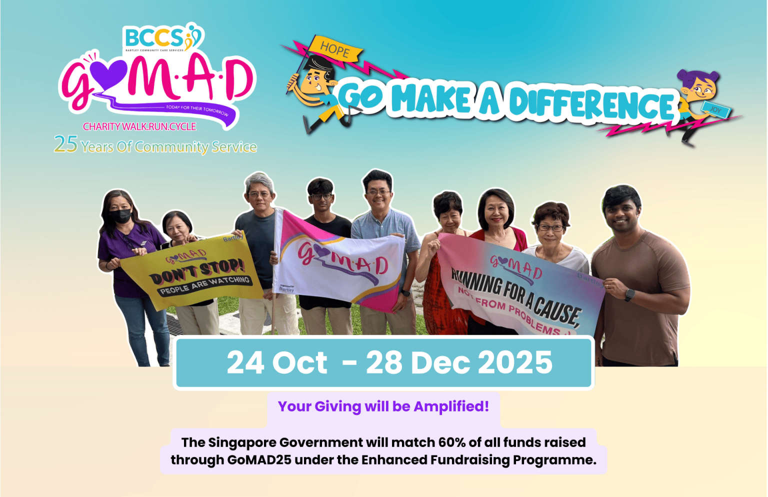As we step out to Make A Difference, Hope and Joy will be by our side, reminding us why we walk, run, and ride: to bring hope and joy to disadvantaged children, families, and seniors in our community.